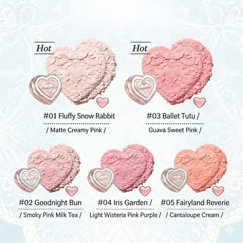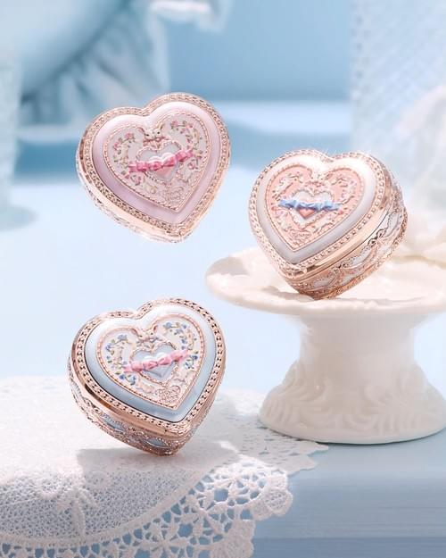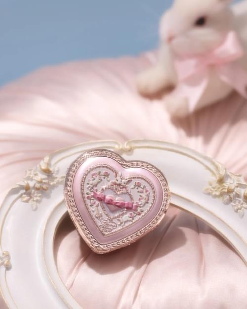 A delicate milky pink that brightens the complexion with a soft, ethereal purity. It’s the perfect choice for a translucent, soft-focus finish. The heart-shaped case is a romantic storybook window into a snowy winter garden. Inside, you’ll discover exquisite carvings of bunnies and lace so enchanting you'll hesitate to touch them—but the luminosity is too irresistible to pass up.