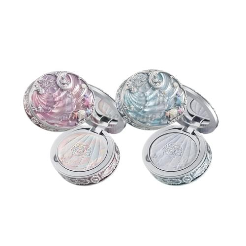Even skin tone with a marbled powder blending transparent pink, blue, white pearl pigments.