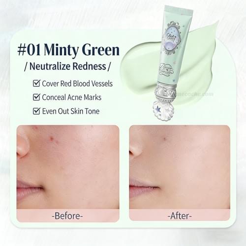 Say goodbye to unwanted redness with this minty green primer. Green pigments visibly tone down acne marks and red capillaries for a flawless, even finish.