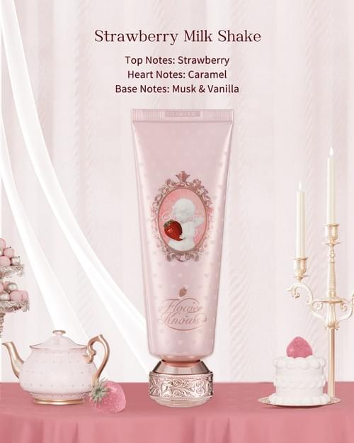 Strawberry Milk Shake is a deliciously sweet blend of juicy strawberry and rich caramel, with a cozy vanilla and musk finish.